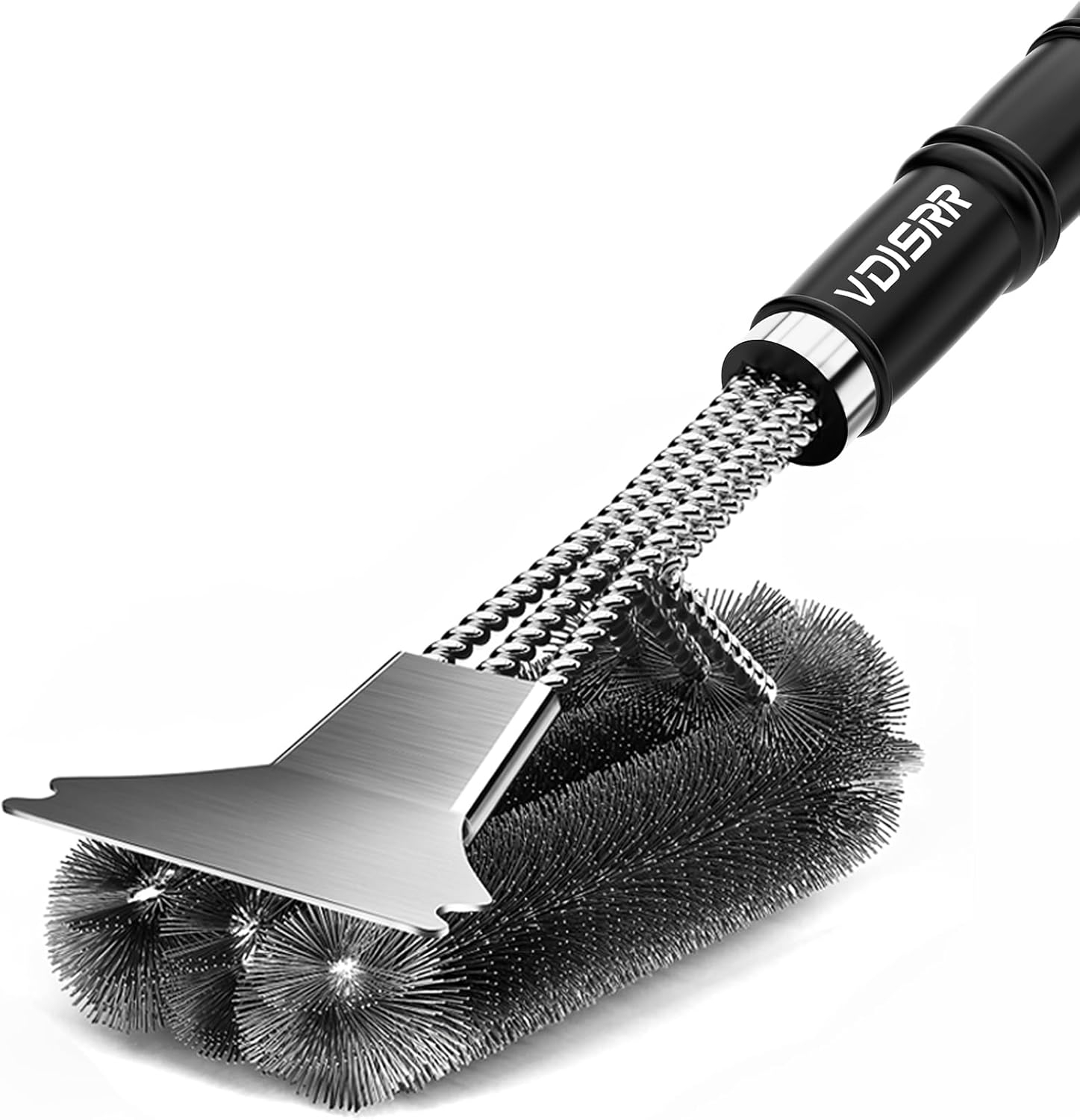 | Name | VDISRR Grillbürste, Grillbürste für Gussrost, Dreireihigen Edelstahlborsten, Lange Griff aus Kunststoff, für Holzkohle-, Elektro- und Gasgrills (Grillbürste mit Vertikalschaber) |