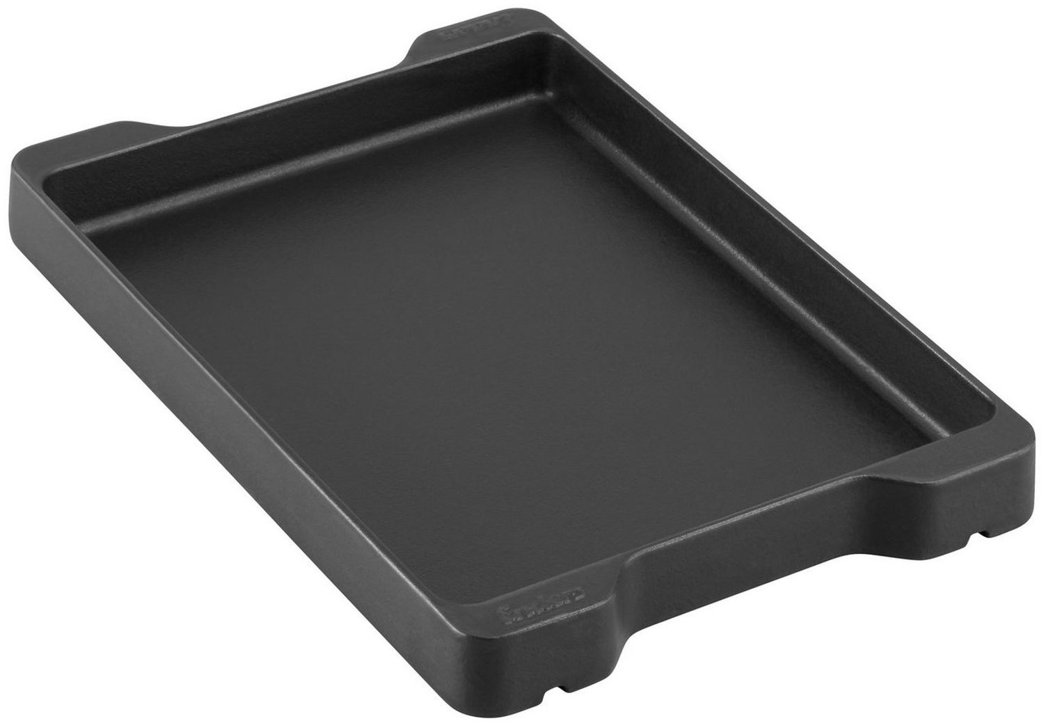 | Beschreibung | Der Enders® Grillrosteinsatz Guss-Wendeplatte ist das ideale Zubehör für die Urban II und Explorer II-Serie. Mit den Abmessungen von 21 x 31 x 3 cm und einem Gewicht von 3 kg sorgt die massive emaillierte Gusseisenplatte für optimale Hitzespeicherung und -verteilung. Sie eignet sich perfekt für die Zubereitung von kleinem Grillgut, das durch den Rost fallen könnte, wie Meeresfrüchte, Gemüse, Spiegeleier, Bacon, Fisch und Burger. **Highlights** - Passgenau für die Urban II- und Explorer II-Serie - Optimale Hitzespeicherung und -verteilung dank massivem emailliertem Gusseisen - Ideal für die Zubereitung von kleinem Grillgut - Hoher Rand ermöglicht leichtes Wenden - Deckt die Hälfte der Grillfläche ab **Produkteigenschaften** - Maße (B x T x H): 21 x 31 x 3 cm - Gewicht: 3 kg - Einsatzmöglichkeiten: Meeresfrüchte, Gemüse, Spiegeleier, Bacon, Fisch, Burger - Lässt sich links oder rechts einsetzen |