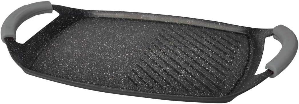 Die Cheffinger Grillplatte ist die ideale Wahl für Grillliebhaber. Mit ihren Abmessungen von 47 x 29 x 4 cm bietet sie ausreichend Platz für Ihr Grillgut. Die hochwertige Aluminiumkonstruktion sorgt für eine hervorragende Wärmeverteilung und hohe Leistung. Dank der kratzfesten Marmorbeschichtung grillen Sie gesund und fettarm. Die abnehmbaren Silikongriffe garantieren zusätzlichen Komfort und Sicherheit. Diese Grillplatte ist für alle Herdarten, einschließlich Induktion, geeignet und hitzebeständig bis 220 °C. **Highlights** - Antihaftbeschichtung: Die kratzfeste Antihaftbeschichtung ermöglicht ein gesundes und fettarmes Grillen. - Leicht zu reinigen: Die Grillplatte ist leicht zu reinigen und spülmaschinenfest. - Hitzebeständig: Die Grillplatte ist hitzebeständig bis 220 °C und kann sogar im Backofen verwendet werden. - Hervorragende Wärmeverteilung: Die spezielle Struktur sorgt für eine gleichmäßige Wärmeverteilung und hohe Leistung. - Geeignet für alle Herdarten, auch für Induktionskochfelder: Die Grillplatte ist für alle gängigen Herdarten geeignet, einschließlich Induktion. **Produkteigenschaften** - Material: Aluminium - Beschichtung: Marmorbeschichtung - Abmessungen: 47 x 29 x 4 cm (L x B x H) - Abnehmbare Silikongriffe für zusätzlichen Komfort und Sicherheit - Ergonomisch geformter Griff mit abnehmbarem Silikonschutz - Pflegeleicht und spülmaschinenfest - Eco freundlich - Geeignet für Gas-, Elektro-, Keramik- und Induktionsherde
