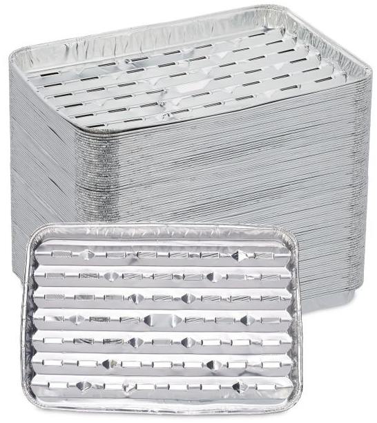 Mit den Grillschalen aus Aluminium im 100er Set (10049377) sind Sie optimal für Ihre nächste Gartenparty gerüstet. Diese praktischen Grillpfännchen eignen sich hervorragend zum Zubereiten von Fisch, Fleisch, Gemüse und weiteren Köstlichkeiten. Die Löcher im Boden sorgen für eine gleichmäßige Erwärmung und intensives Grillaroma, während der Grillrost vor Verschmutzungen geschützt bleibt. Ideal auch zum Erwärmen von Resten im Backofen. **Highlights** - 100er Set für zahlreiche Anwendungen - Hitzebeständig bis max. 260 °C - Gleichmäßiges Erhitzen durch Löcher im Boden - Kein direkter Kontakt mit dem Grillrost - Vielseitig einsetzbar für verschiedene Grillarten und den Backofen **Produkteigenschaften** - Maße (H x B x T): ca. 3 x 34 x 22 cm - Gewicht je Schale: ca. 20 g - Material: Aluminium - Farbe: Silber **Lieferumfang** - 100 x Aluschale - Dekorationsartikel sind nicht im Lieferumfang enthalten