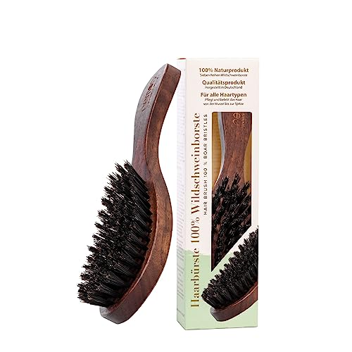 100% Wildschweinborsten bieten eine schonende Pflege und stimulieren die natürliche Haarstruktur.