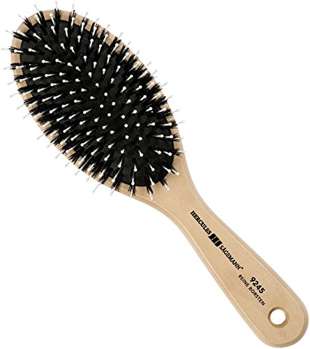 Die Hercules Pneumatikbürste 9245 ist eine hochwertige Haarbürste, die sich durch ihre sanfte Handhabung und Eignung für verschiedene Haartypen auszeichnet. Die Kombination aus Wildschwein- und Plastikborsten ermöglicht eine effektive Pflege und ein angenehmes Bürstengefühl. Die Bürste ist robust und langlebig, sollte jedoch regelmäßig gereinigt werden, um optimale Ergebnisse zu erzielen.