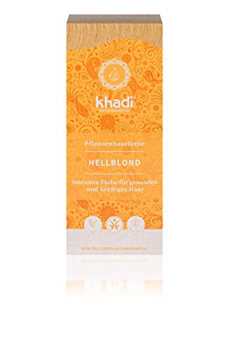 Die Khadi Pflanzenhaarfarbe in der Nuance Hellblond bietet eine natürliche Farbgebung mit einem warmen Ton und einem leichten Rotgold-Schimmer. Neben der schönen Farbe sorgt die Haarfarbe auch für griffigere, fülligere und gepflegte Haare. Die Farbe hält gut und lässt sich dank ihrer breiigen Konsistenz einfach auftragen. Ein weiterer Pluspunkt ist, dass das Produkt keine chemischen Inhaltsstoffe enthält, was Reizungen vermeidet.