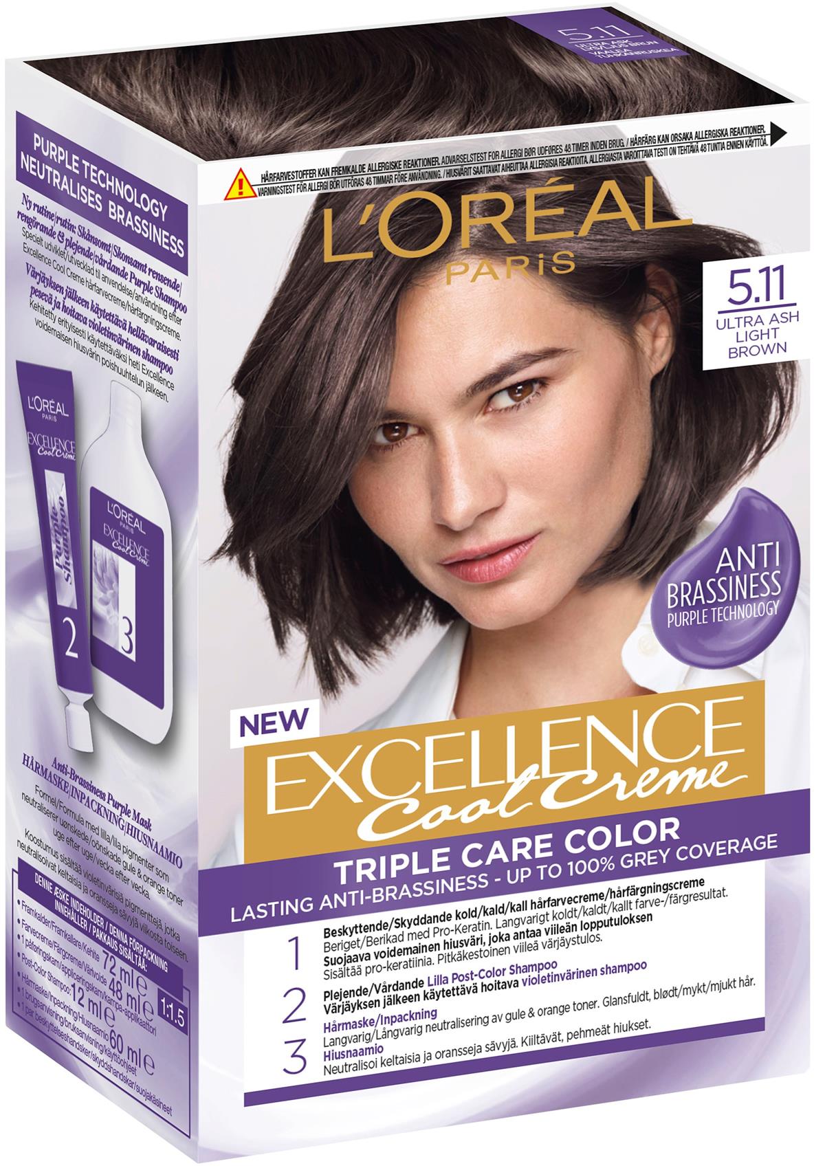 Die L´Oréal Paris Excellence Haarfarbe in der Nuance Ultra kühles Mittelblond 7.11 bietet eine einfache Anwendung und ein günstiges Preis-Leistungs-Verhältnis für zu Hause. Die innovative Cool Creme Technologie sorgt für ein ultra-kühles Farbergebnis, das graue Haare effektiv abdeckt und gleichzeitig pflegt.
