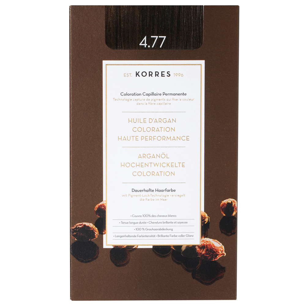 Die Korres Argan Oil Hair Colorant in der Nuance 4.77 Schokobraun Intensiv bietet Ihnen eine angenehme Möglichkeit, Ihre Haarfarbe zu Hause aufzufrischen oder zu verändern. Dank des enthaltenen Arganöls wird Ihr Haar schonend gefärbt und gepflegt, sodass es gesund und glänzend aussieht. Viele Kunden schätzen den angenehmen Geruch sowie die gute Grauabdeckung dieser Haarfarbe.