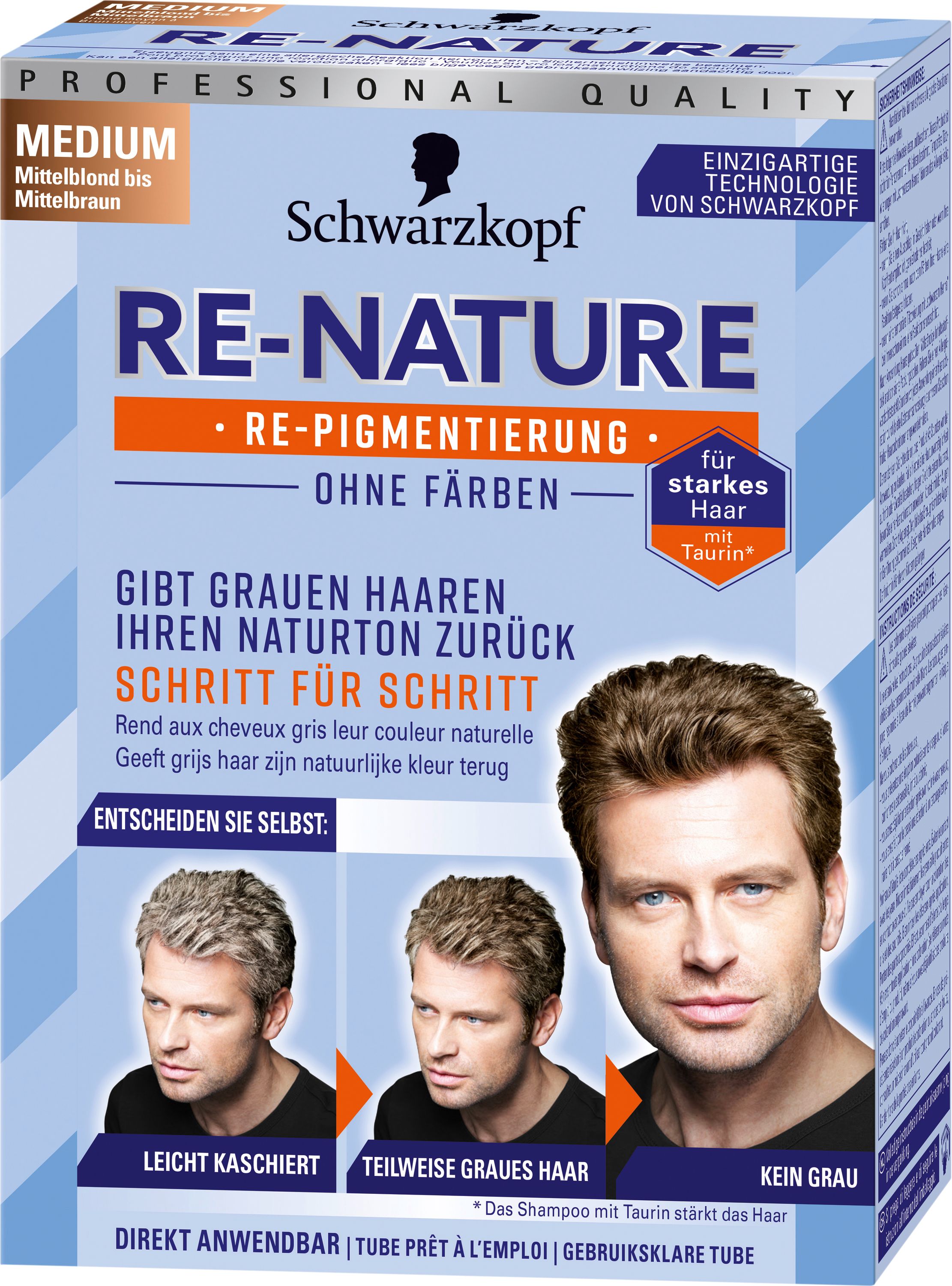 Die Schwarzkopf Re-Nature Re-Pigmentierung für Männer ist ein Produkt, das darauf abzielt, graue Haare auf natürliche Weise zu kaschieren. Es bietet eine schrittweise Verdunkelung der Haare ohne die typischen Anzeichen einer Färbung. Die Anwendung ist einfach und das Ergebnis kann individuell angepasst werden, wobei es jedoch nicht für stark ergraute Haare geeignet ist. Einige Anwender berichten von unerwünschten Farbnuancen und einer unzureichenden Abdeckung bei stark grauen Haaren.