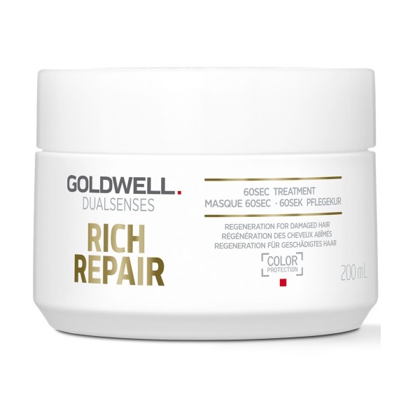 Die Goldwell Dualsenses Rich Repair 60sec Treatment Haarmaske ist eine intensive Pflegebehandlung für geschädigtes und trockenes Haar. Die cremige Konsistenz der Maske sorgt dafür, dass die Kur kaputte Stellen im Haar gut ausfüllt und somit das Aussehen des Haares verbessert. Die Anwendung dauert nur 60 Sekunden, was es zu einer schnellen Lösung macht, um dein strapaziertes Haar wieder gesund aussehen zu lassen.
