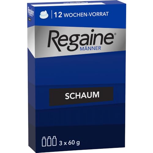Die Regaine Männer Schaum 3-Monatspackung mit 50 mg/g Minoxidil hat gemischte Bewertungen erhalten. Einige Anwender berichten von positiven Ergebnissen wie dichterem Haar und weniger Haarausfall, während andere negative Erfahrungen mit Nebenwirkungen und mangelnder Wirksamkeit gemacht haben. Die Anwendung ist einfach und das Produkt zieht schnell ein, jedoch ist Geduld erforderlich, um Ergebnisse zu sehen. Es gibt Bedenken, dass es bei erblich bedingtem Haarausfall möglicherweise nicht hilft.