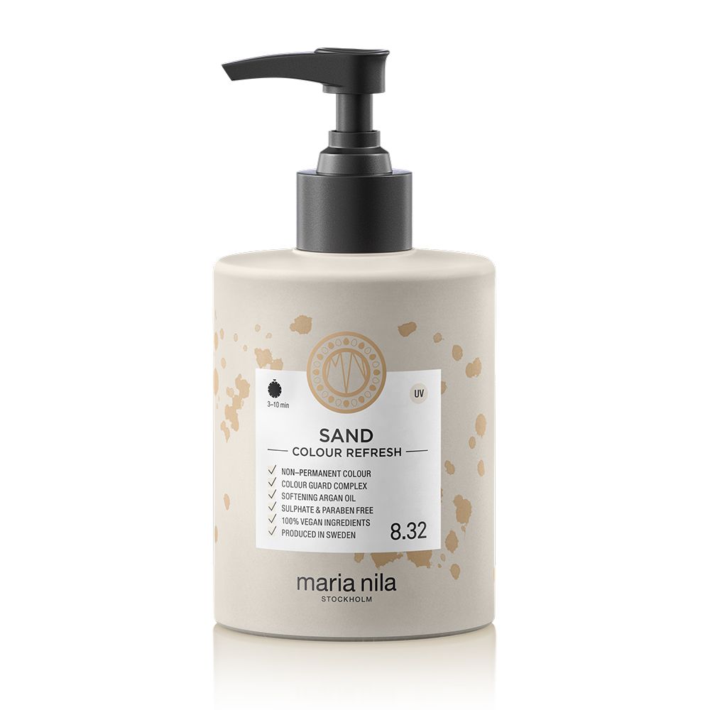 Das Maria Nila Colour Refresh Sand 8.32 bietet eine schonende Möglichkeit, das Haar zu pflegen und ihm einen schönen Glanz zu verleihen, während gleichzeitig ein gleichmäßiges und ansprechendes Farbergebnis erzielt wird. Diese temporäre Farbveränderung ohne Schädigung der Haare ist umweltfreundlich hergestellt und wurde nicht an Tieren getestet.