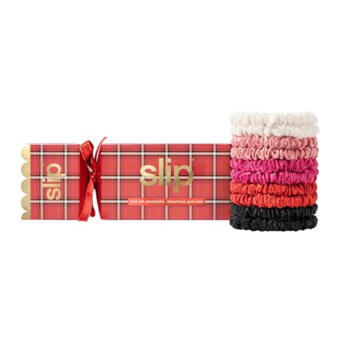 SLIP Back to Basics Skinny Scrunchies in Holiday Cracker Verpackung | Anti-FaltenAnti-Breakage Slipsilk™ Design | 10 Haargummis aus reiner Seide, Jeans