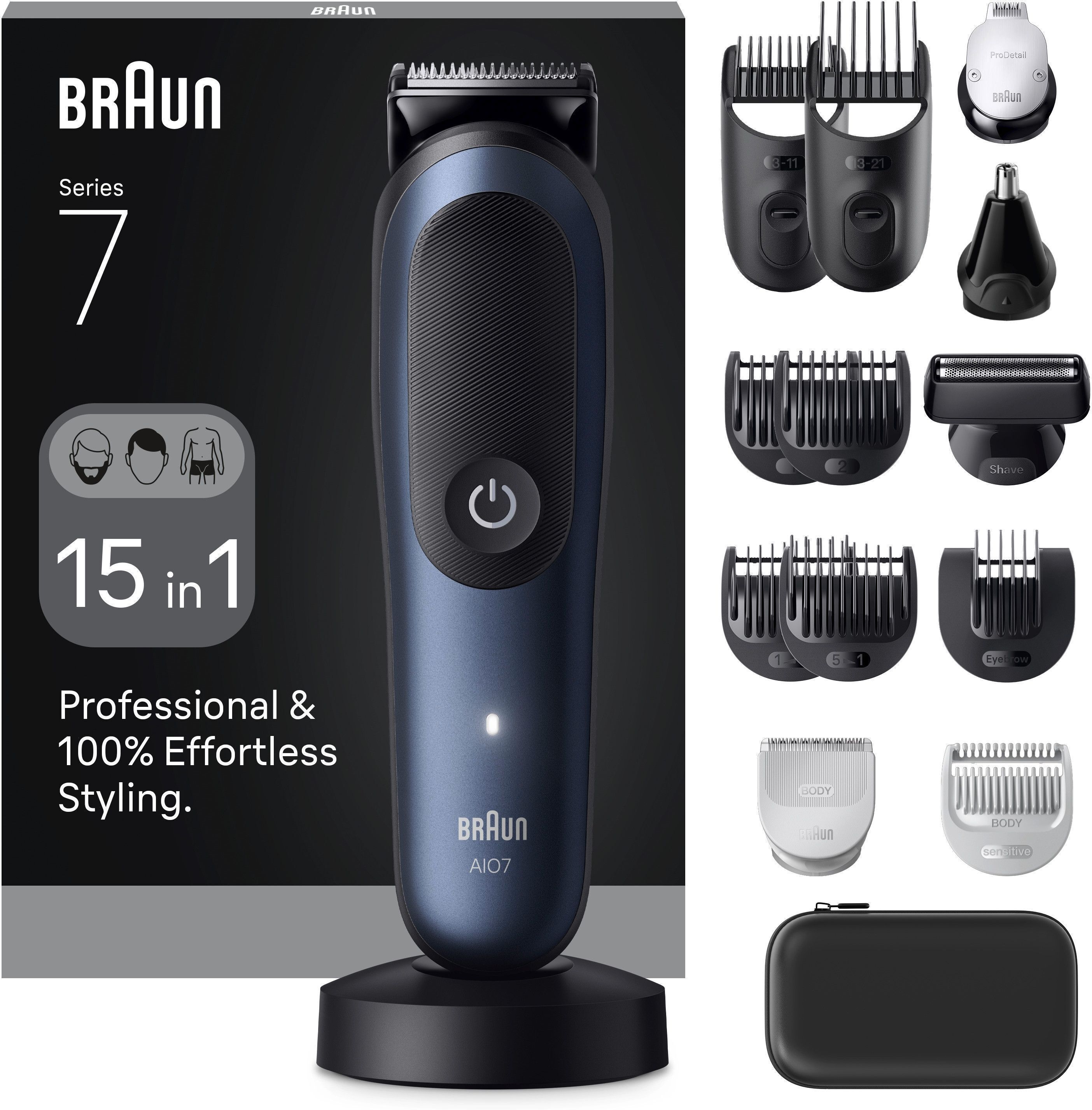 "Der Braun All-in-One Rasierer AIO 7580 präsentiert sich als durchdachter und leistungsstarker Begleiter für die tägliche Pflege. Besonders überzeugen Ergonomie, Verarbeitung und die Vielseitigkeit durch das umfangreiche Zubehör. In sensiblen Körperzonen sowie beim präzisen Trimmen von Bart und Konturen liefert das Gerät sehr gute Ergebnisse. Schwächen zeigen sich lediglich bei den Übergängen unterschiedlicher Längen und bei der Effektivität der Augenbrauen- und Nasenhaaraufsätze. Die Bedienung ist intuitiv, das Reinigungskonzept durchdacht und der Akku überzeugt mit Laufzeit und Schnellladefunktion. Ein modernerer Ladeanschluss und eine bessere Akkustandsanzeige wären wünschenswert – dennoch bleibt der Braun AIO 7580 ein starker Allrounder für alle, die ein vielseitiges und hochwertiges Pflegetool suchen."