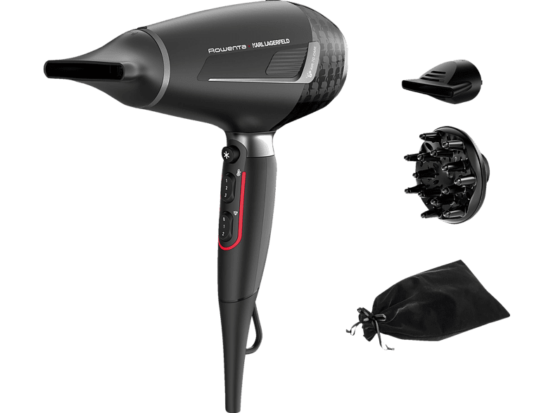 5 Styling-Aufsätze: 2 Lockenaufsätze, Ovalbürste, Paddelbürste, Konzentrator, Diffusor.