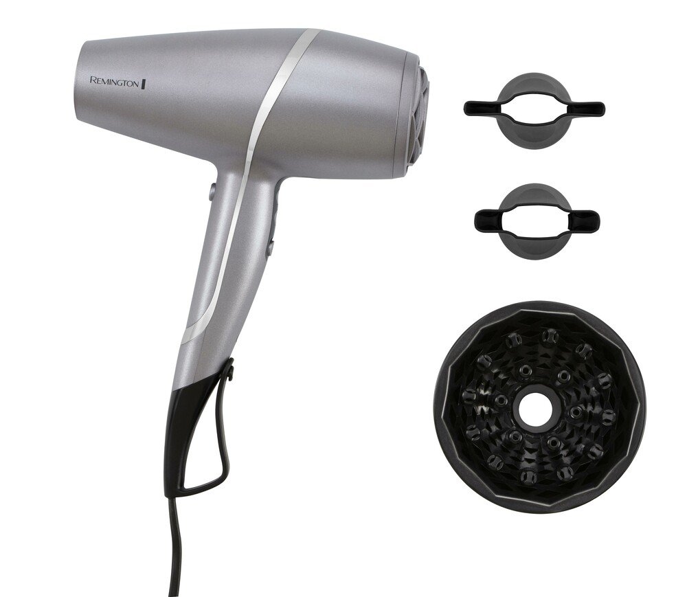 5 Styling-Aufsätze: 2 Lockenaufsätze, Ovalbürste, Paddelbürste, Konzentrator, Diffusor.