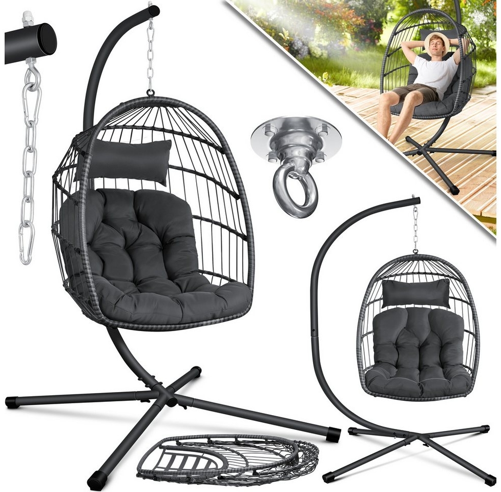 | Name | KESSER® Hängesessel Jungle, mit Gestell, Inkl. Großen Kissen + Decken Halterung, Anthrazit |