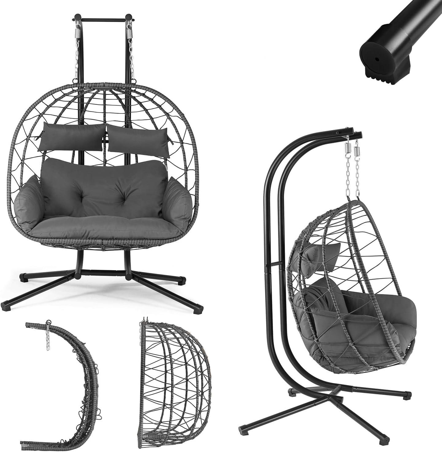 | Name | Juskys Doppelhängesessel Aria - Polyrattan Hängesessel mit Gestell & Kissen - Schaukel für zwei Personen - Outdoor Indoor Sessel - XXL Korb Grau |