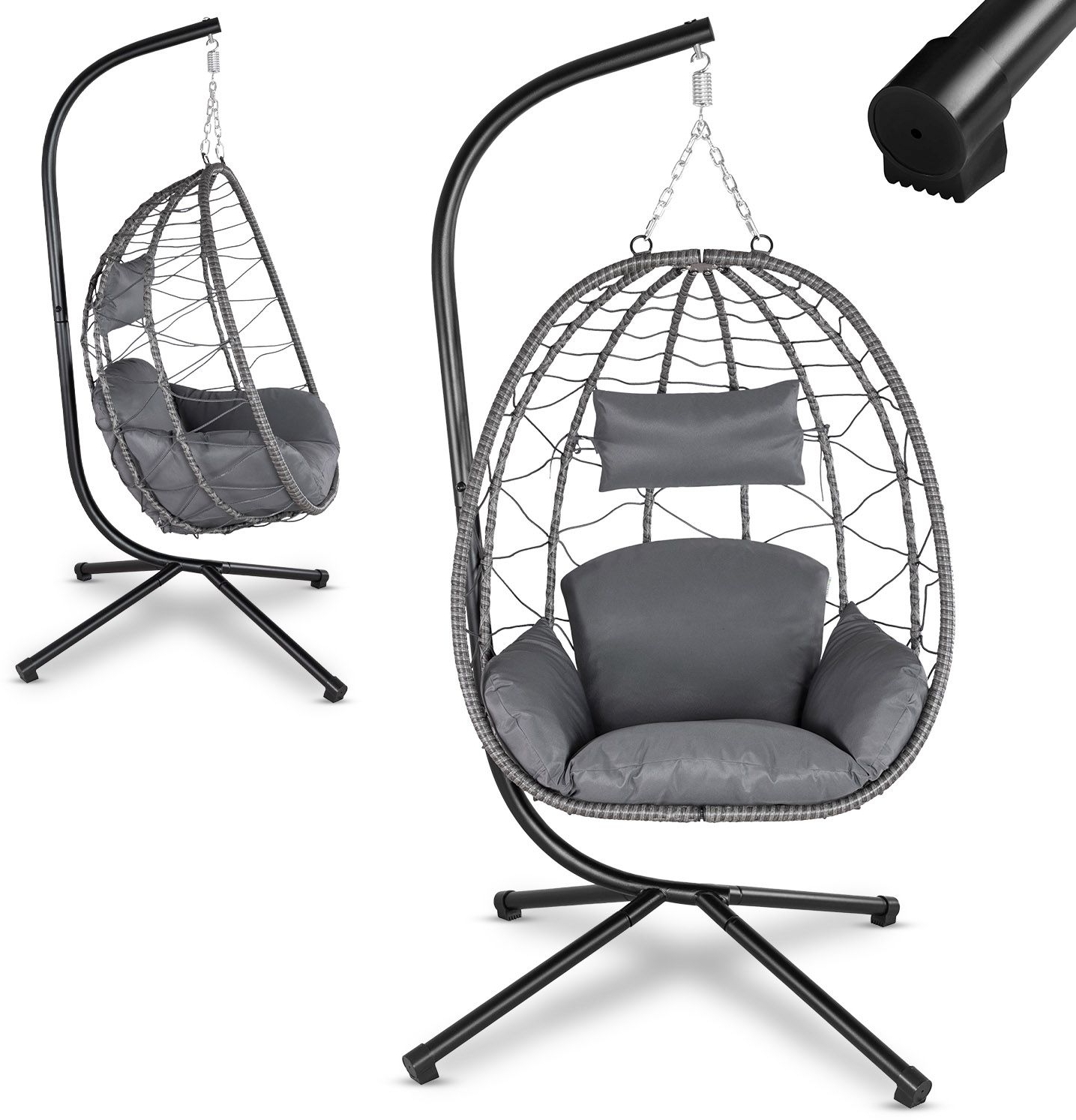 | Name | Juskys 'Aria' Hängesessel mit Kissen, höhenverstellbar & faltbar, Polyrattan dunkelgrau, bis 130 kg belastbar |