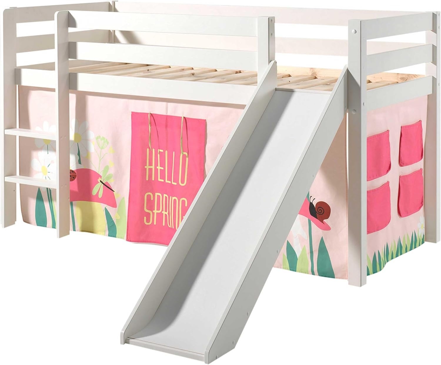 | Name | Vipack 'Pino' Halbhochbett weiß, inkl. Rutsche und Vorhang 'Spring' |