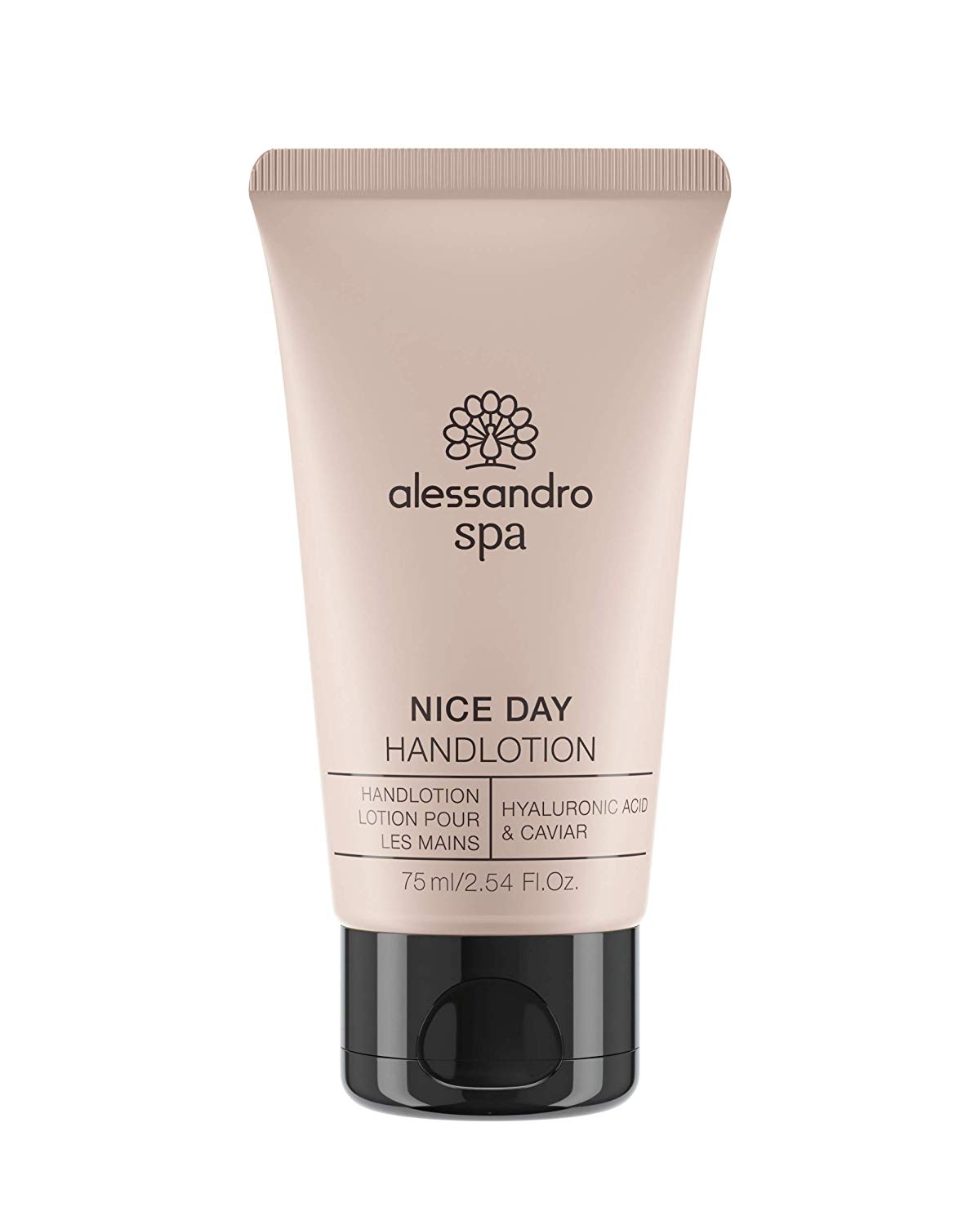 Die alessandro Spa Nice Day Handcreme ist eine leichte Handlotion mit Hyaluronsäure und Kaviar, die schnell einzieht und ein angenehmes Hautgefühl hinterlässt. Sie hat einen zarten Duft und wird von vielen Nutzern als pflegend und ergiebig beschrieben. Einige Nutzer äußern jedoch, dass sie die Creme nicht mögen.