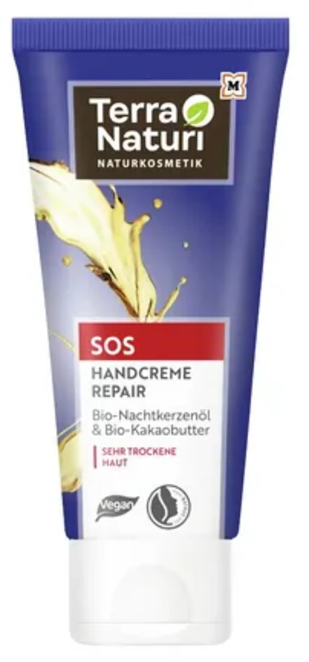 • Die Terra Naturi SOS Handcreme Repair spendet intensiv Feuchtigkeit für besonders trockene Hände.