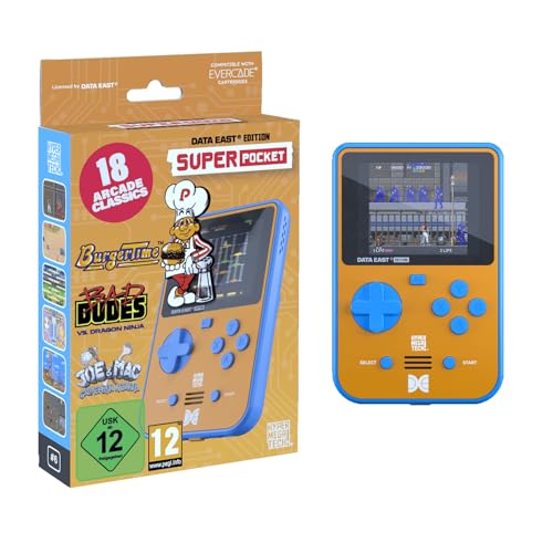 BLAZE EVERCADE DATA EAST SUPER POCKET Handheld-Konsole mit 18 vorinstallierten Arcade-Spielen, 2,8 Zoll IPS Display, USB-C-Laden, 4+ Stunden Akkulaufzeit