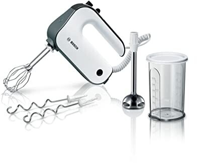 | Lieferumfang | inkl. Stabmixer-Aufsatz, Mixbehälter (0,6 Liter), Knethaken, Schneebesen |
