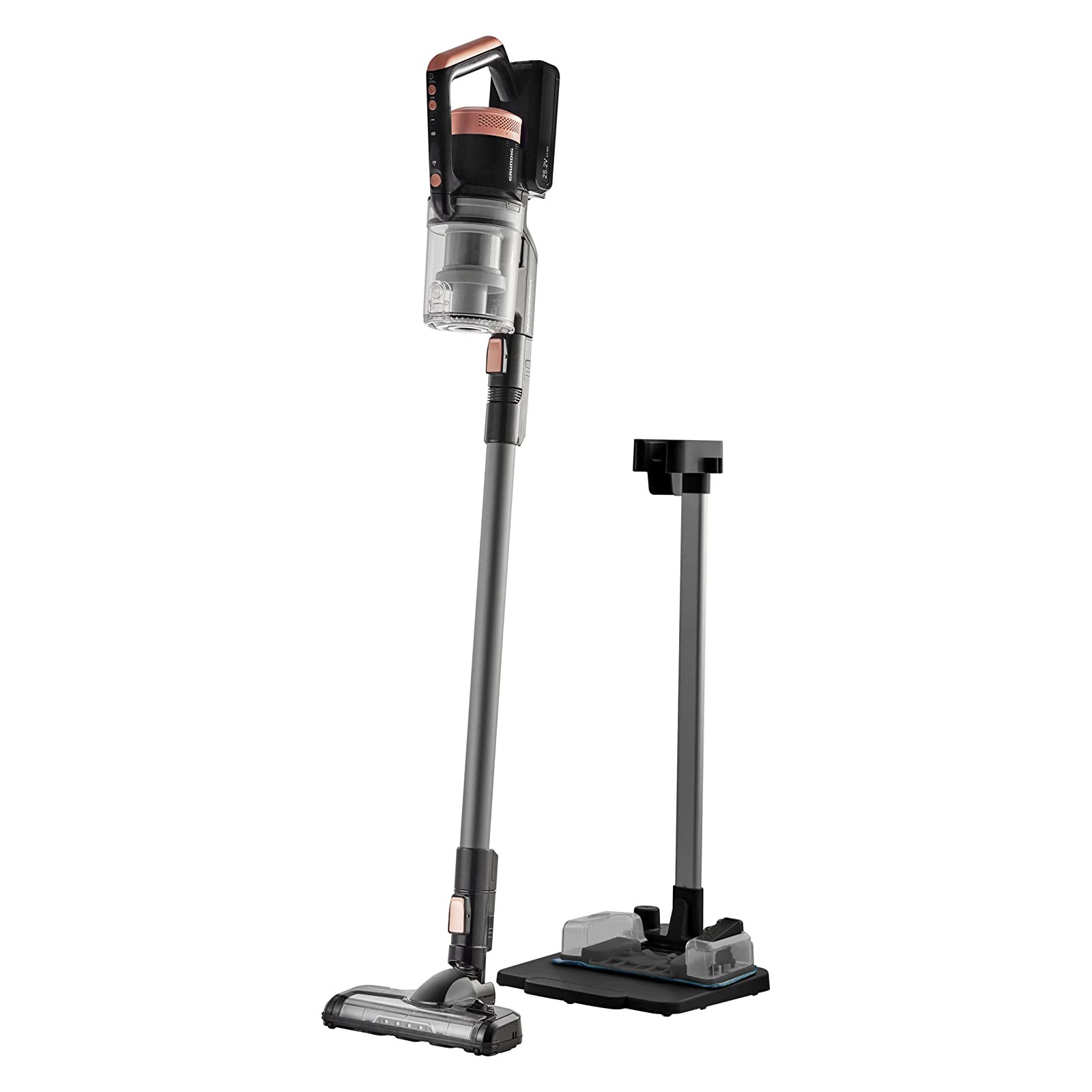 Der Handstaubsauger kommt in einem modernen Design in schwarz und kupfer, das in viele moderne Haushalte passt. Mit Abmessungen von 26 cm x 110 cm x 22 cm und einem Gewicht von 2,4 kg ist das Gerät kompakt und dennoch stabil. Die platzsparende Ladestation ermöglicht eine einfache Aufbewahrung, während die 4 LED-Leuchten die Sichtbarkeit unter Möbeln verbessern. Die Verarbeitung ist durchweg solide, wobei einige Nutzer das Gewicht als etwas schwer empfinden.