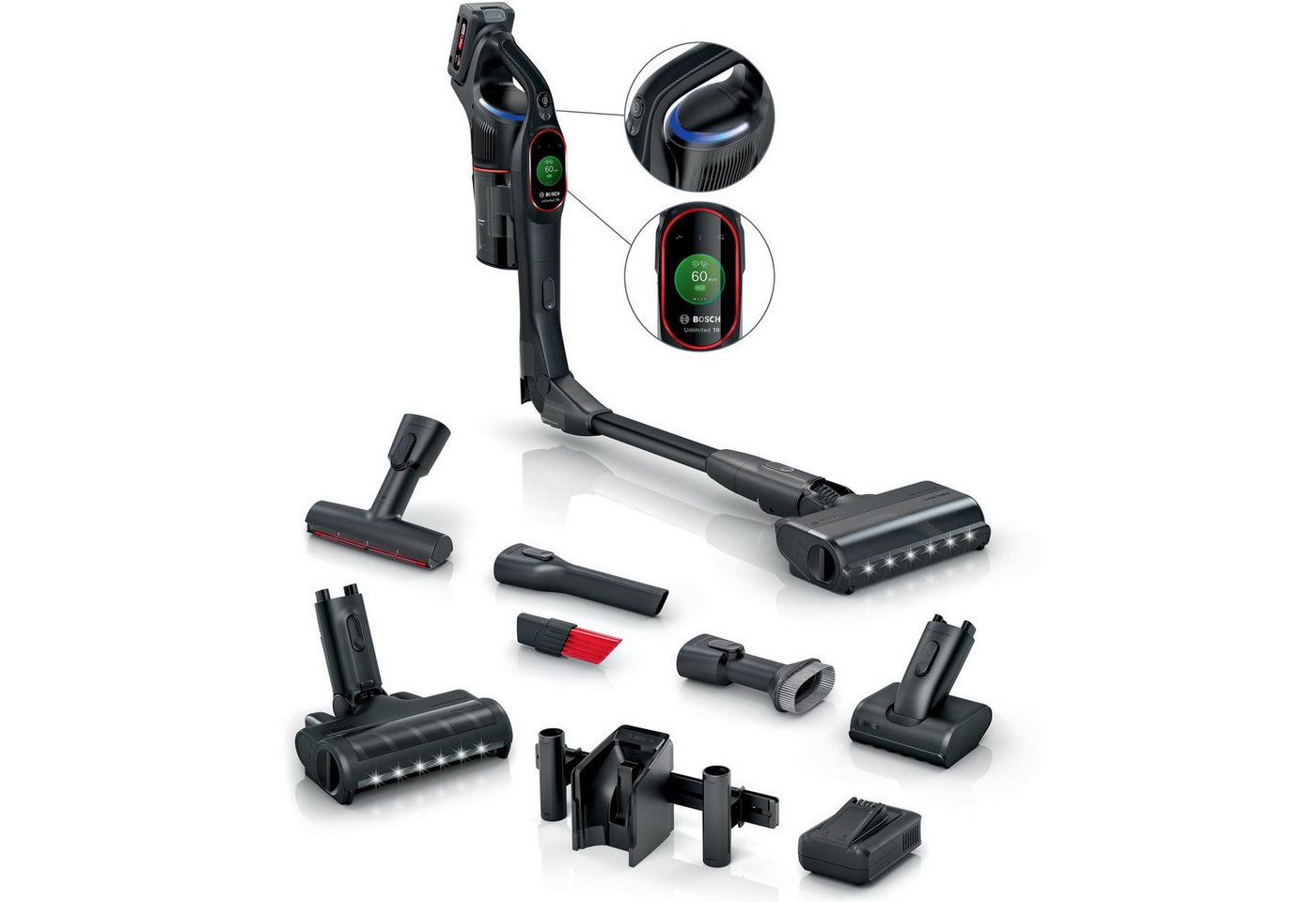 Laut der Testerinnen und Tester bietet der Bosch Unlimited 10 starke Saugleistung, vielseitiges Zubehör und praktische LED-Bodendüsen, die unter Möbel reichen. Die Akkulaufzeit ist im Automatikmodus jedoch eingeschränkt, weshalb ein Wechselakku sinnvoll ist. - zusammengefasst durch die Testsieger.de Redaktion