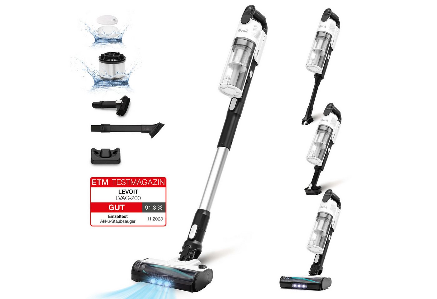 Laut der Testerinnen und Tester punktet der Levoit LVAC-200 mit einfacher Handhabung, solidem Design und günstiger Preisgestaltung. Schwächen bei der Saugleistung und der Handhabung von Haaren schränken jedoch seine Funktionalität erheblich ein. - zusammengefasst durch die Testsieger.de Redaktion