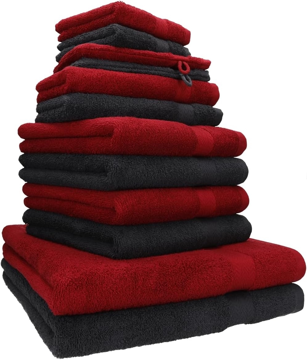 Hochwertiges 12-teiliges Handtuch-Set von Betz aus 100% Baumwolle. Die flauschigen und saugstarken Handtücher bieten ein angenehmes Wohlfühl-Ambiente. Mit einem Gewicht von 470 g/m² sind sie besonders strapazierfähig und pflegeleicht. Das Set umfasst verschiedene Handtuchgrößen, die in jedem Badezimmer eine zeitlose Eleganz ausstrahlen. **Highlights** - 100% Baumwolle für höchsten Komfort - Saugstark und langlebig - Pflegeleicht, waschbar bis 60°C und trocknergeeignet - Zeitloses Design in klassischen Farben - Handtuchaufhänger für einfache Aufbewahrung **Produkteigenschaften** - 2 Waschhandschuhe: 16 x 21 cm - 2 Seiftücher: 30 x 30 cm - 2 Gästetücher: 30 x 50 cm - 4 Handtücher: 50 x 100 cm - 2 Duschtücher: 70 x 140 cm - Gewicht: 470 g/m² **Lieferumfang** - 2 Waschhandschuhe - 2 Seiftücher - 2 Gästetücher - 4 Handtücher - 2 Duschtücher