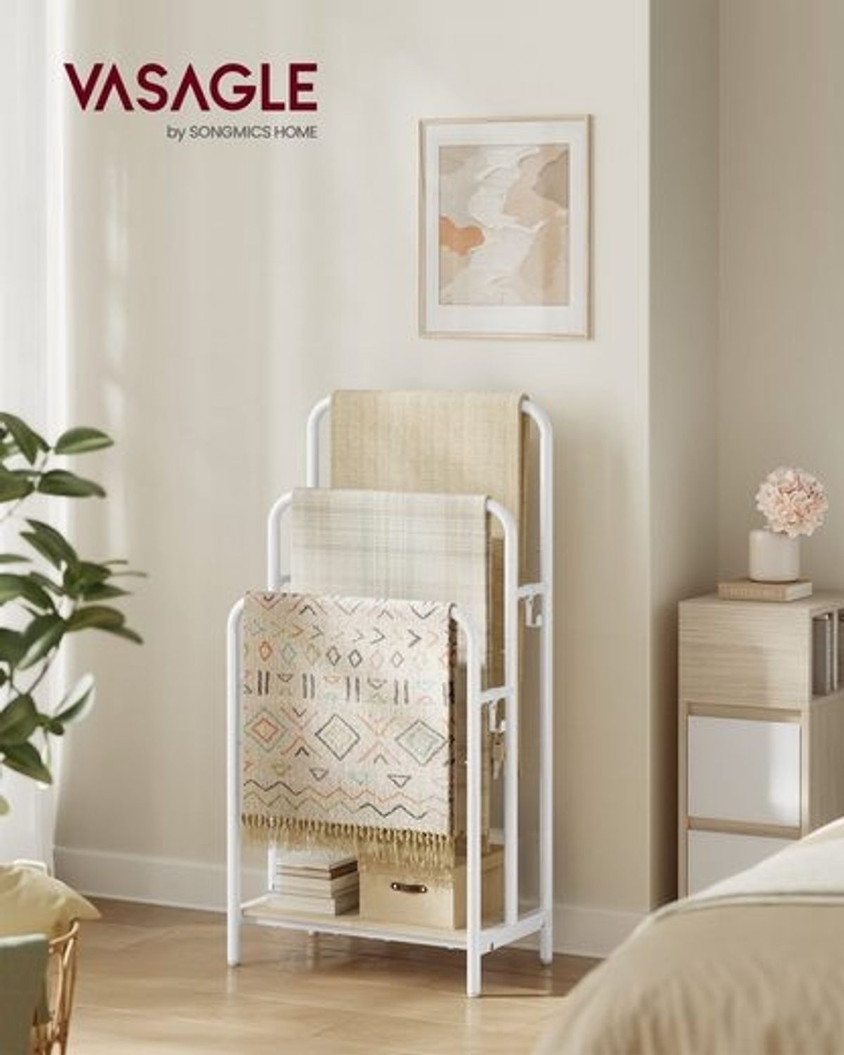 | Name | VASAGLE Handtuchhalter, stehend, Handtuchständer 3 Stangen, 50 x 30 x 100 cm, 2 Haken, Ablage, für Decke, Badetücher, wolkenweiß-naturbeige LLS009W01 |