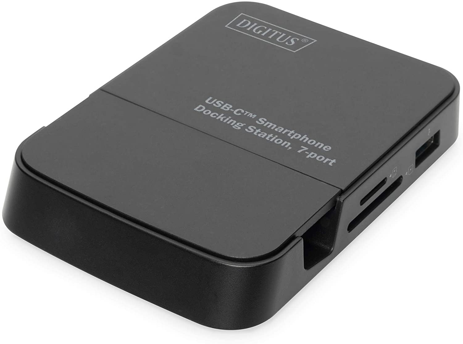 Die DIGITUS USB-C Smartphone Docking Station bietet eine Vielzahl von Anschlussmöglichkeiten für Smartphones und Tablets. Sie ist stabil und kann Peripheriegeräte sowie Speichermedien unterstützen. Mit dieser Docking Station können Sie Ihr mobiles Gerät in einen Desktop-Computer verwandeln, indem Sie es mit einem Monitor, einer Tastatur oder einer Maus verbinden.