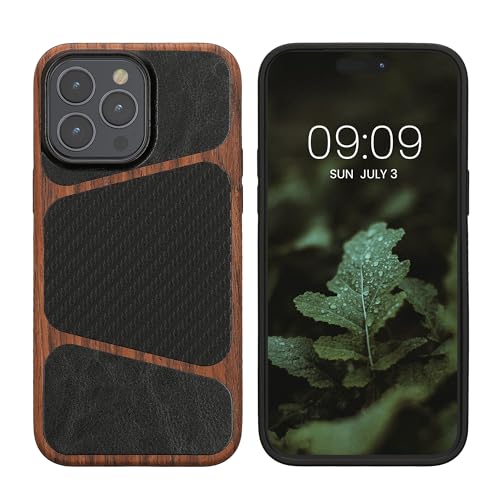 kalibri Hülle kompatibel mit Apple iPhone 15 Pro Max - Carbon Textur Design Kunstleder Holz - MagSafe Zubehör - Dunkelbraun Schwarz