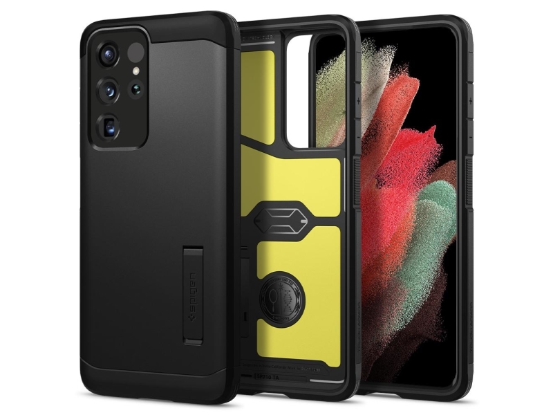 Die Spigen Tough Armor Handyhülle für das Samsung Galaxy S21 Ultra in Schwarz bietet einen effektiven Schutz vor Stürzen und absorbiert den Aufprall. Das robuste Material sorgt dafür, dass Ihr Smartphone optimal geschützt ist und bei einem möglichen Sturz keine Schäden davonträgt. Die Hülle ist gut verarbeitet und überzeugt durch ihr dezentes Design.