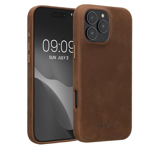 • Die kalibri Schutzhülle für das Apple iPhone 16 Pro Max bietet einen klassischen Look in Braun und schützt zuverlässig vor Schmutz und Kratzern