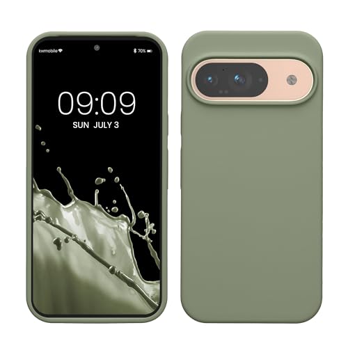 kwmobile Hülle kompatibel mit Google Pixel 9 / Pixel 9 Pro - Silikon Handy Case - weiche Oberfläche - kabelloses Laden - Graugrün