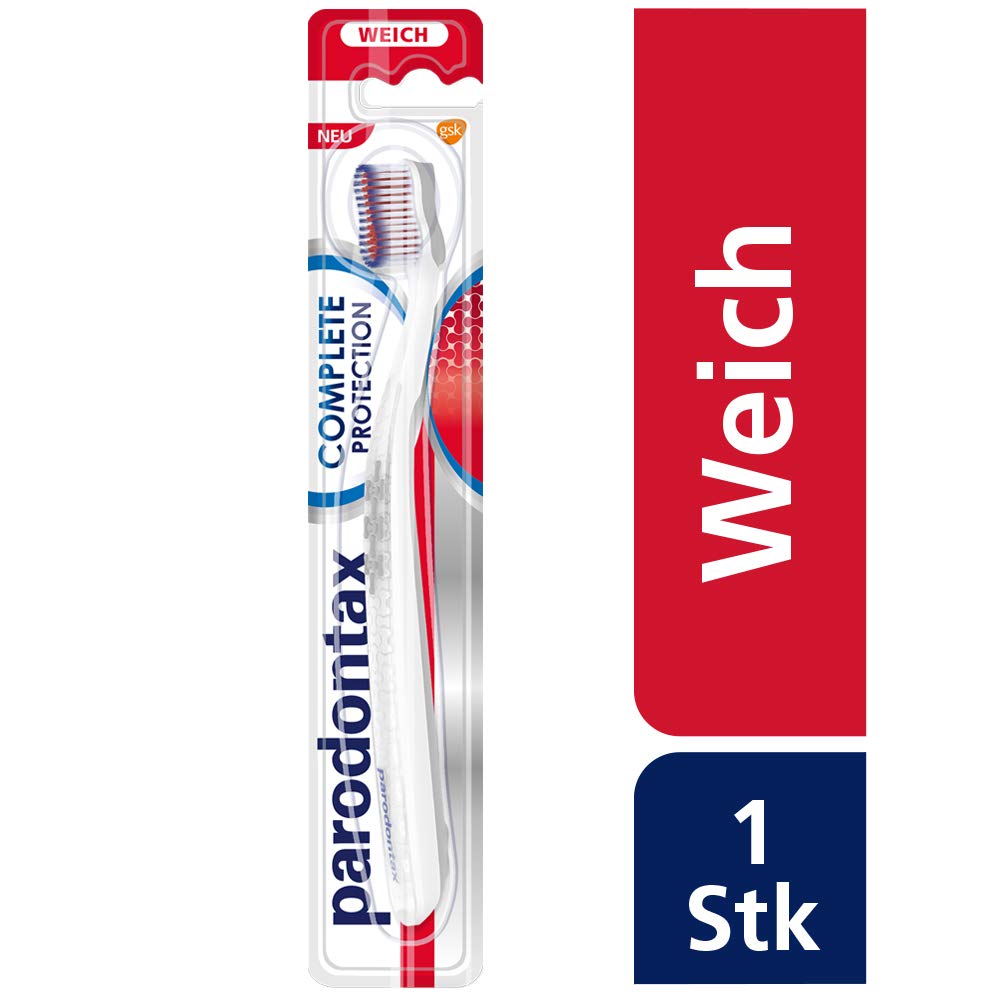 Die Parodontax Complete Protection Zahnbürste bietet eine gründliche Reinigung und ist besonders geeignet für empfindliches Zahnfleisch. Sie hat weiche Borsten, die gut reinigen und ein angenehmes Putzerlebnis ermöglichen. Allerdings wird der Griff als unflexibel und rutschig beschrieben, was die Handhabung erschwert. Zudem ist die Bürste für die hinteren Zähne weniger geeignet.