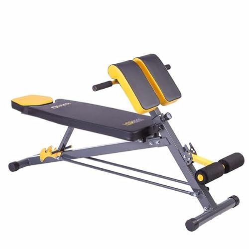 HMS Premium LSR8311Bank mit Hyperextension und Stütze, max. Belastbarkeit 160 kg, verstellbarer Sitz, schwarz/gelb