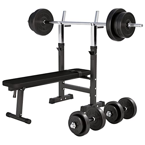 Die GORILLA SPORTS® Hantelbank ist ein stabiles und platzsparendes Trainingsgerät, das sich gut für Anfänger und den Hausgebrauch eignet. Die Verarbeitung der Hantelstangen ist ansprechend, jedoch sind die mitgelieferten Plastikgewichte dicker als herkömmliche Metallgewichte. Die Hantelbank bietet zusätzliche Möglichkeiten durch die integrierten Dip-Griffe. Die Montage kann aufgrund der mangelhaften Anleitung und des unzureichenden Werkzeugs etwas herausfordernd sein.