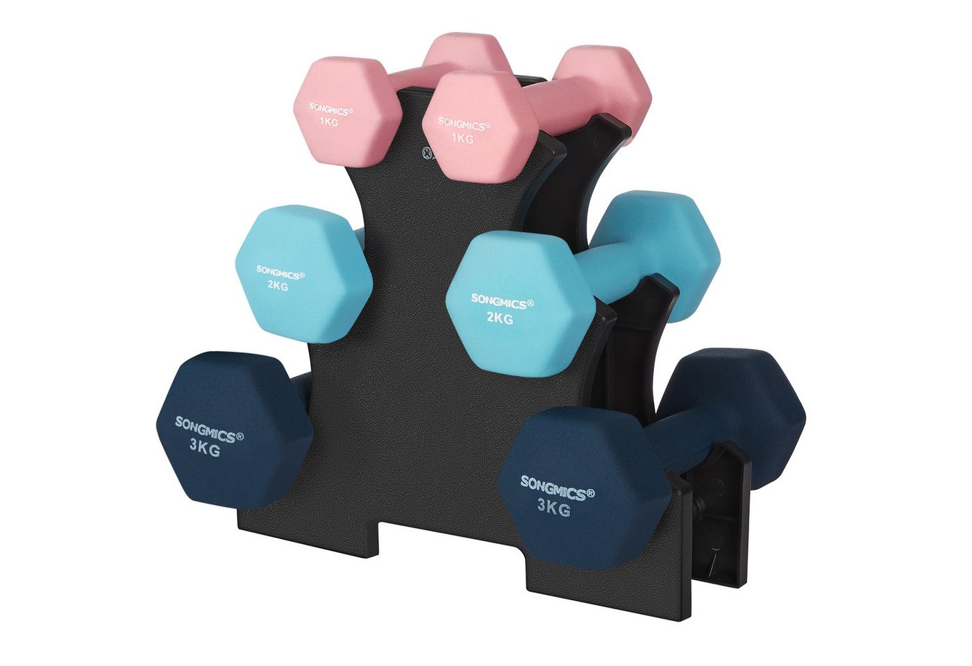 SONGMICS Hantel-Set Kurzhanteln12kg, Hexagon, Neopren Hanteln, Rosa, Aquamarin, Blau