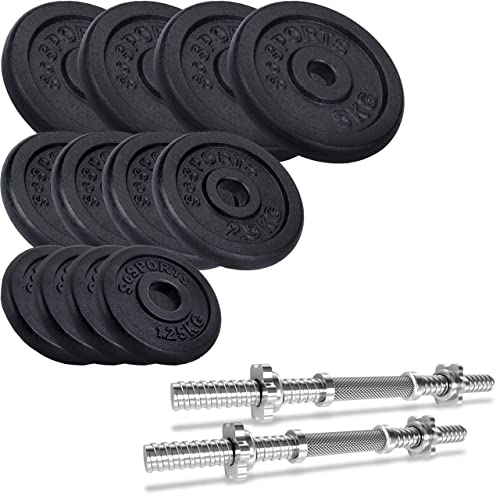 ScSPORTS® Kurzhantel Set - 35 KG (4x5 + 4x2.5 + 4x1.25), 2 Hantelstangen, 30mm, Gusseisen, Gewinde, Sternverschluss, Schwarz - Kurzhantelset, Hantelset, Kurzhantelstange