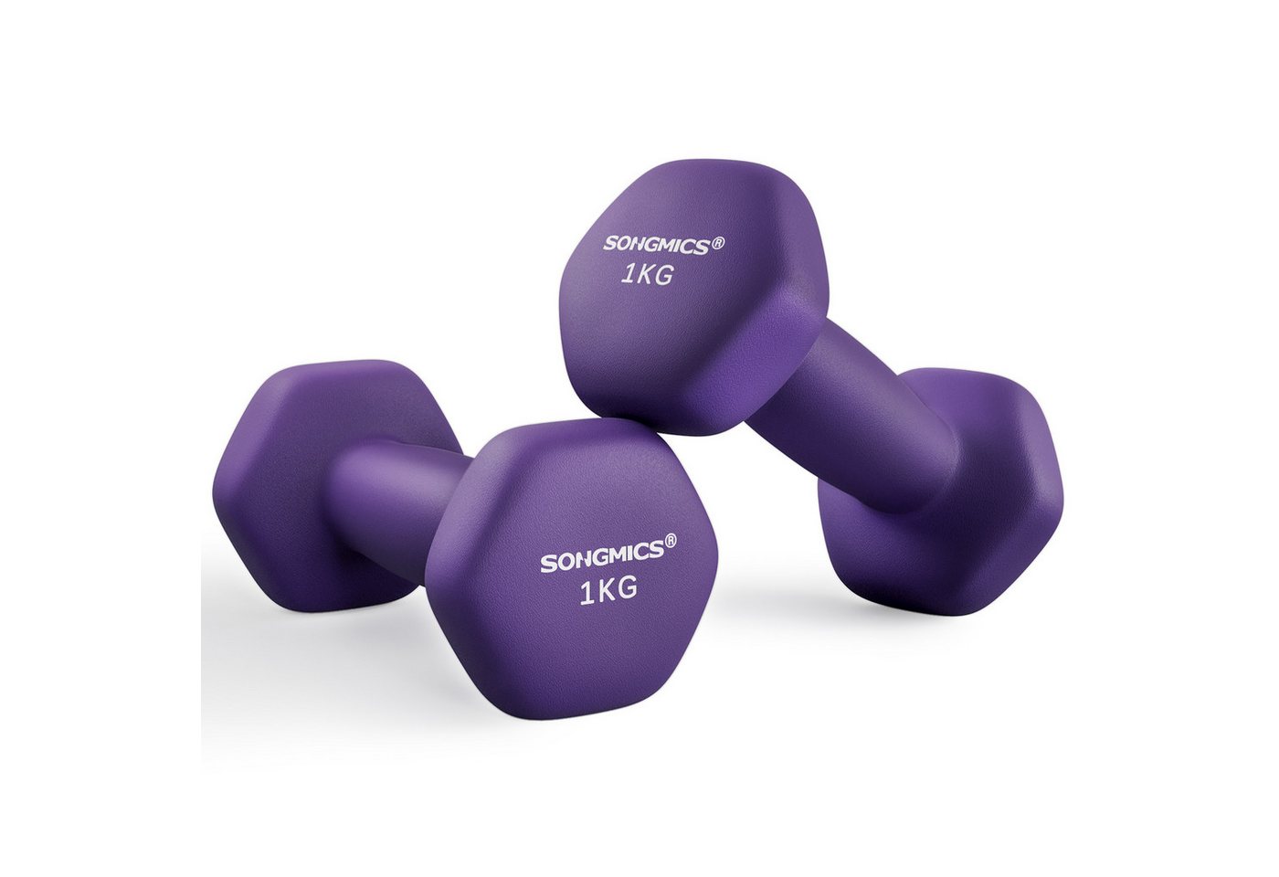 SONGMICS Kurzhantel Hanteln2er Set Neopren-Beschichtung, Hexagon, Krafttraining, Workout, Fitnesstraining, Orange-Rosa-Lila-Fruchtgrün-Hellblau-Blaugrün-Blau-Rot-Grau.
