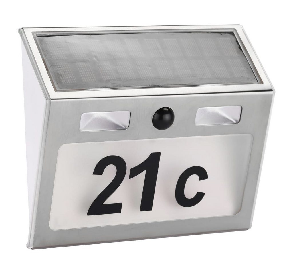 HI Hausnummer Solar LED-beleuchtet SilbernStahlgehäuse, 200 Lumen, 5 Lumen Standby-Modus