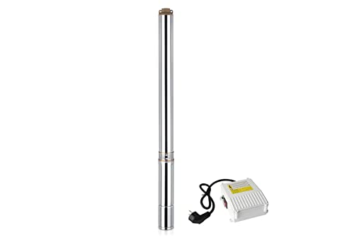 CHM GmbH® Tiefbrunnenpumpe 3 Zoll 370 Watt 2800 l/h 5,6 Bar Druck 20m Kabel u. Motorschutzschalter 3% sandverträglichEdelstahl - Hauswasserwerk