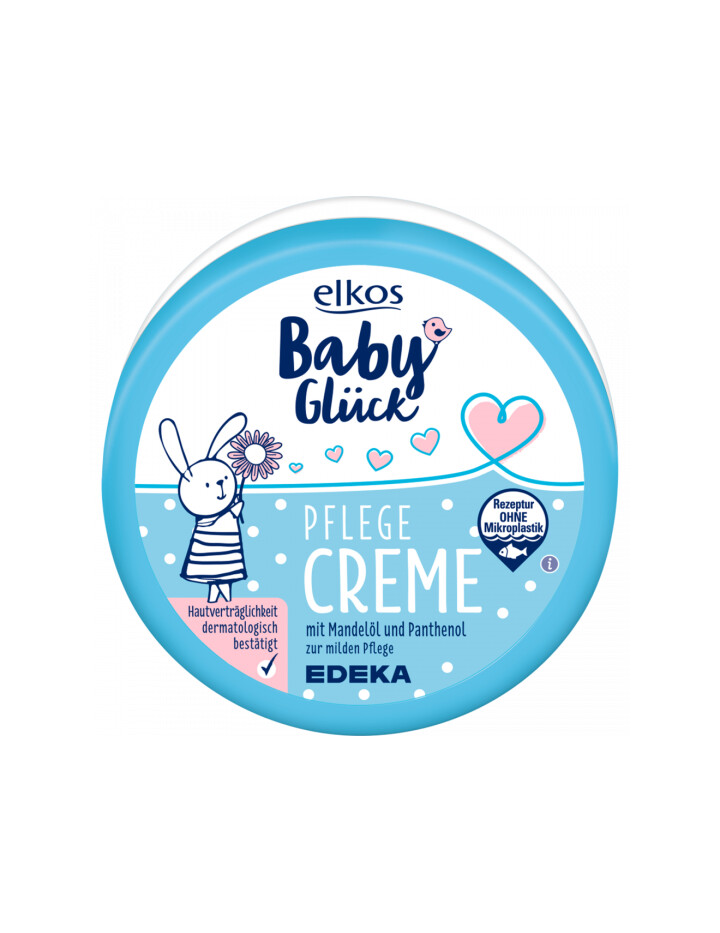 • Die EDEKA Elkos Babyglück Zartcreme ist mikroplastikfrei und schont damit die Umwelt sowie die zarte Babyhaut.