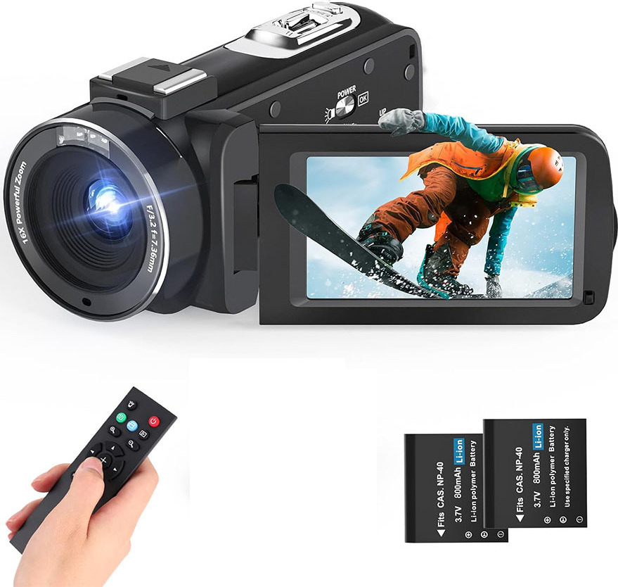 bedee Videokamera Camcorder 1080P 36MP mit 3,0'' TouchscreenIR Nachtsicht, 16X Digital Zoom, 2 Batterien, schwarz