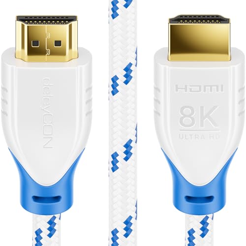 Das deleyCON 2m 8K HDMI 2.1 Kabel bietet eine hohe Bildqualität mit Unterstützung für 4K Auflösungen und hohe Framerates. Es ist robust und langlebig, hat jedoch eine steife Ummantelung, die das Verlegen in engen Räumen erschwert.