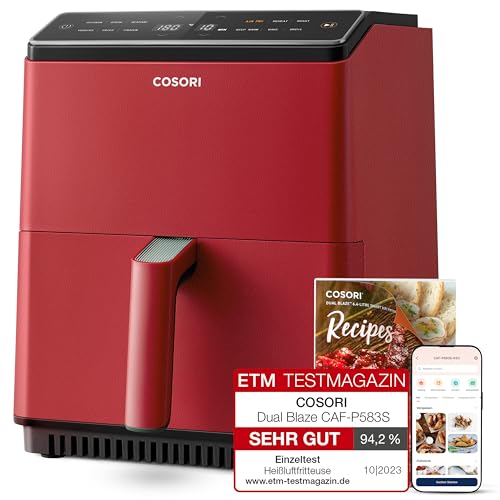 "Die Cosori 6.4L Dual Blaze Smart Air Fryer ist eine brillante Luftfritteuse, die mit ihren zwei Elementen Lebensmittel bemerkenswert gleichmäßig gart. Es ist ein herausragendes Gerät mit einem großen Korb und vielen verschiedenen Funktionen für das Garen einer Vielzahl von verschiedenen Lebensmitteln, und obwohl es ein wenig kastenförmig aussehen mag, ist es eine beeindruckende Fritteuse für seinen relativ hohen Preis."