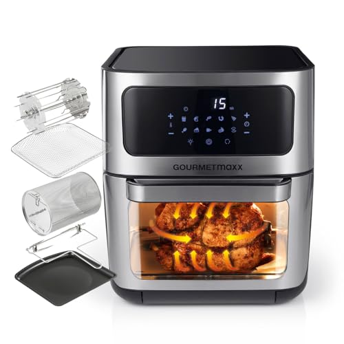Vielseitige Nutzung als Fritteuse, Grill und Ofen mit 12 Litern Garraum für große Portionen.