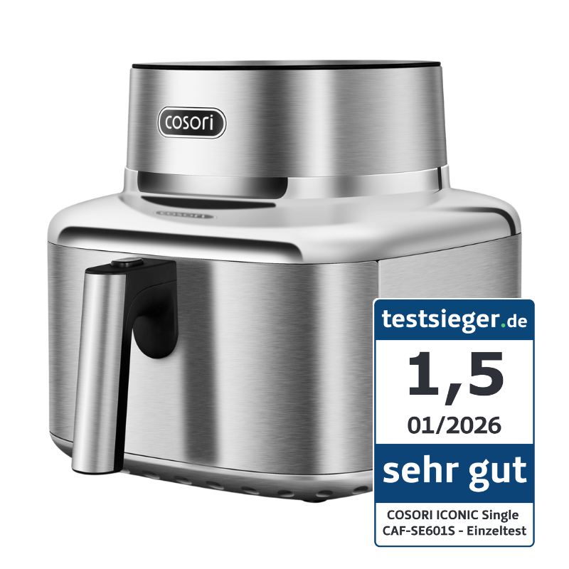 Laut der Testerinnen und Tester von Computer Bild überzeugt der Cosori Iconic Single durch hochwertige Verarbeitung und präzise Ergebnisse. Die Bedienung ist einfach, jedoch ist die Edelstahloberfläche pflegeintensiv. Insgesamt ein leistungsstarker Airfryer für Designliebhaber.- zusammengefasst durch die Testsieger.de-Redaktion
