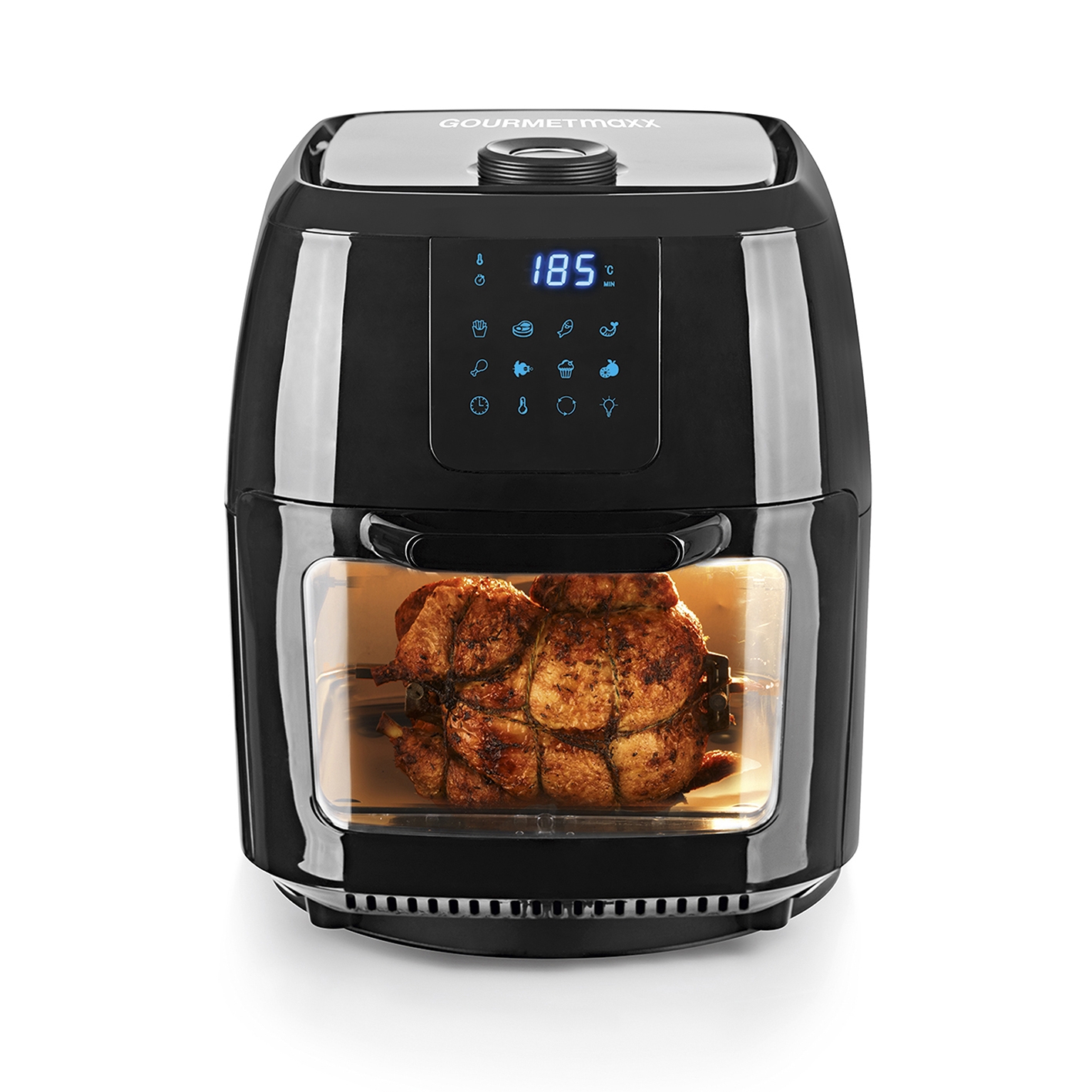 | Lieferumfang | inkl. Drehkorb, Backblech bzw. Fettauffangschale, Backgitter, Hähnchenspieß, 10 Schaschlikspieße, Entnahmehilfe |